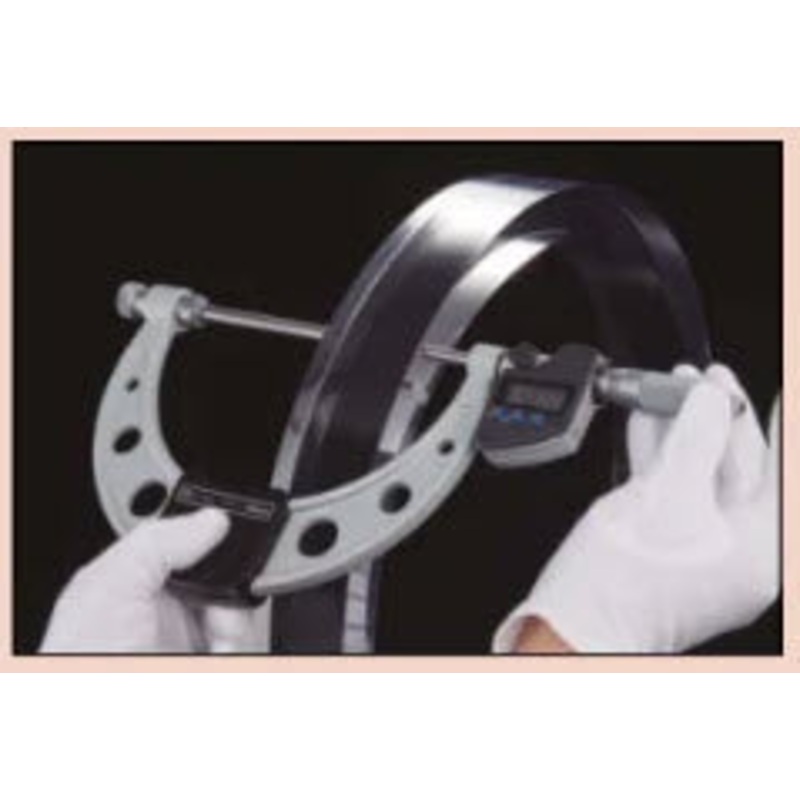 A Mitutoyo digital micrometer provided with easily interchangeable anvils to enable a wide measuring range from one instrument. A ratchet stop guarantees repeatable measurement. Digimatic data output.