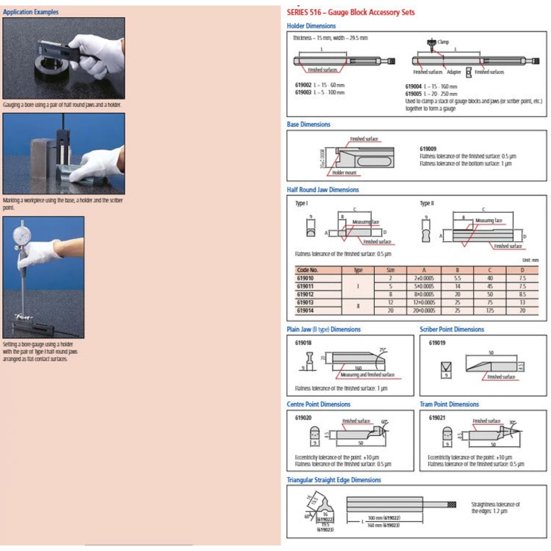 These accessories are specially designed for long gauge blocks over 100mm which have two coupling holes on the body.