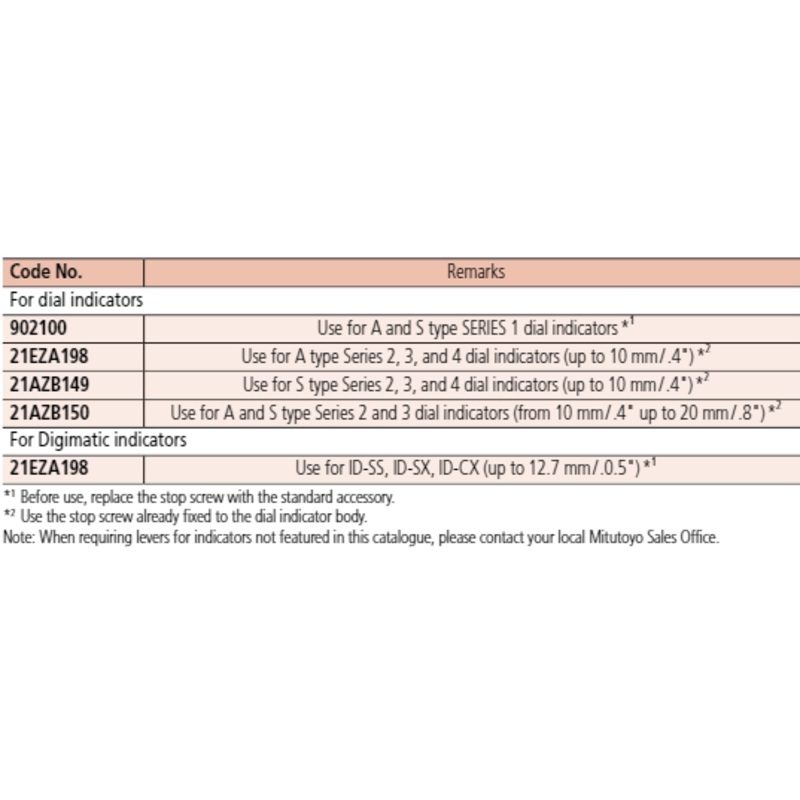 Mitutoyo Spindle Lifting Lever for S and A-Type Serie 2,3 >10/0,4 up to 20mm/0,8 Item number: 21AZB150