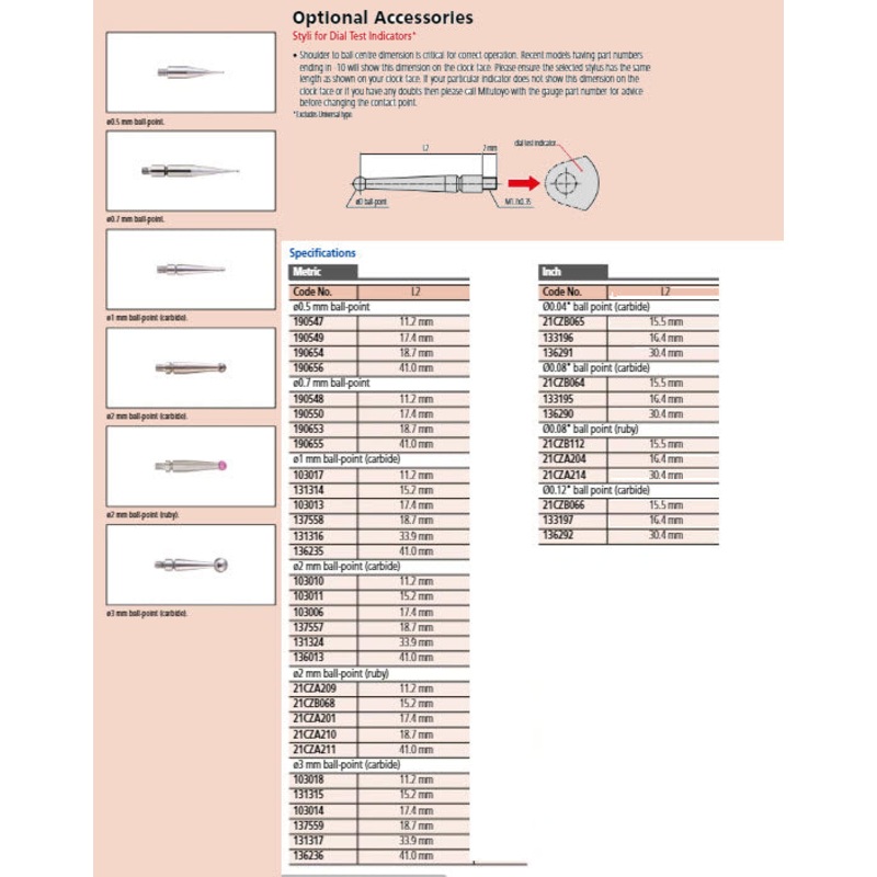 Mitutoyo Stylus for Serie 513 D=3mm, 41mm Length, Steel Item number: 136236