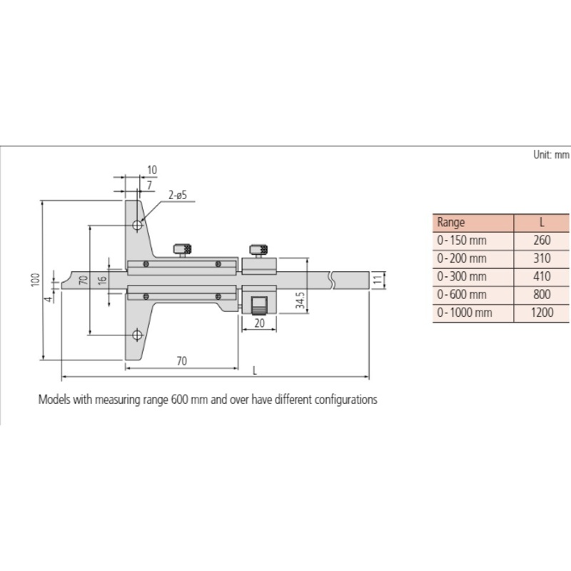 Mitutoyo Vernier Depth Gauge 0-200mm, 0,02mm, Fine adjustment 527-102