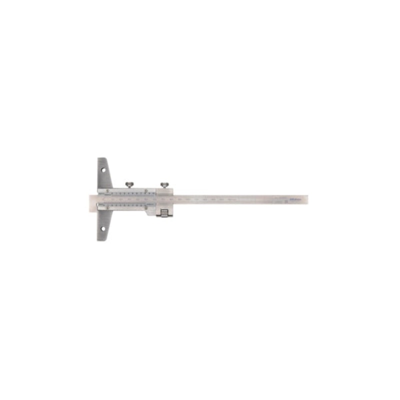 - The end of the beam is hook-shaped so you can take depth and thickness measurements of a projected portion or lip in a hole, as well as standard depth measurements.