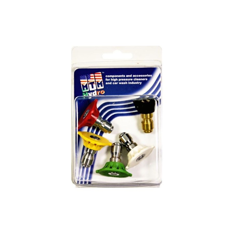 MTM Hydro’s 4 Pack of Stainless QC Nozzles offer superior performance and extended life as a result of our refined manufacturing process. This premium nozzle pack has 0, 15, 25, and 40 Stainless QC Nozzles that are 100% tested for orifice accuracy and degree setting so you never have to worry about using an inaccurate nozzle. In addition to the meticulous testing process, MTM Hydro nozzles are manufactured with striations in the stainless steel to securely hold the pressed head of the nozzle and eliminate the possibility of the coloured head falling off, as with competing models.