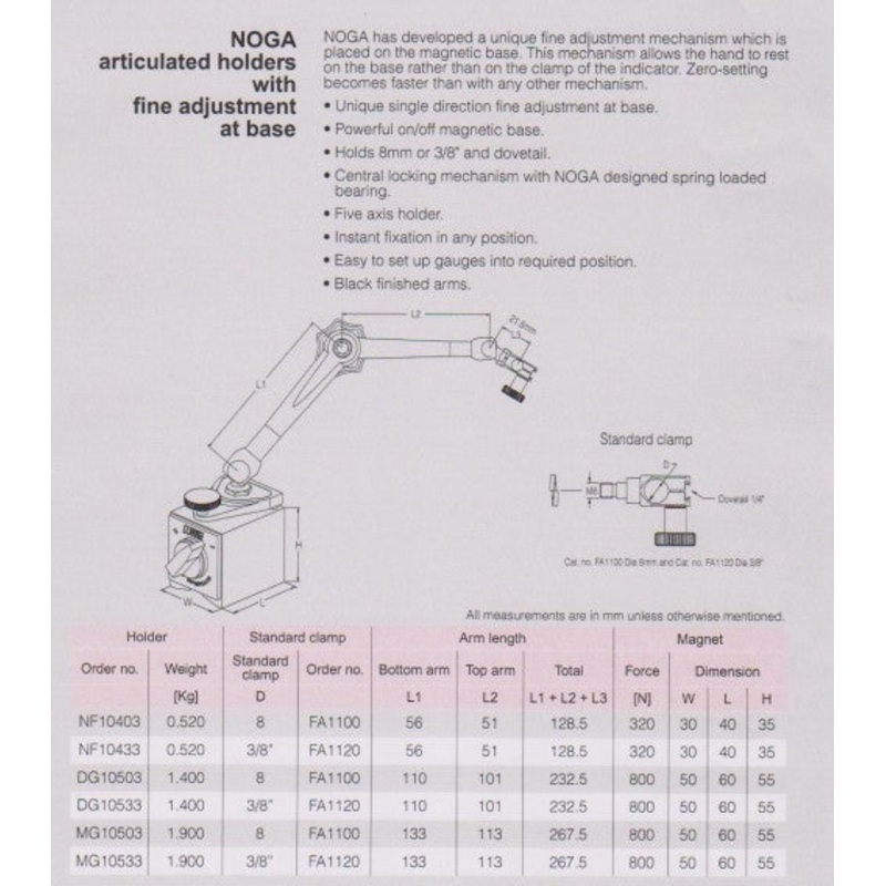 placed on the magnetic base. This mechanism allows the hand to rest on the base rather than on the clamp of the indicator. - Zero setting becomes faster than with any other mechanism