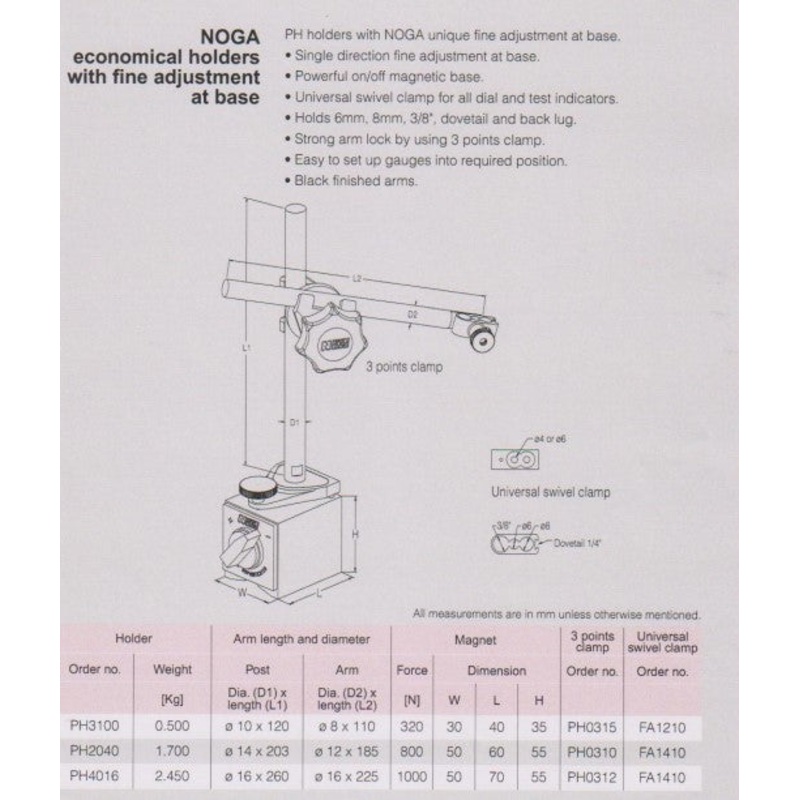 - NOGA PH holders with unique fine adjustment at base (FAB).