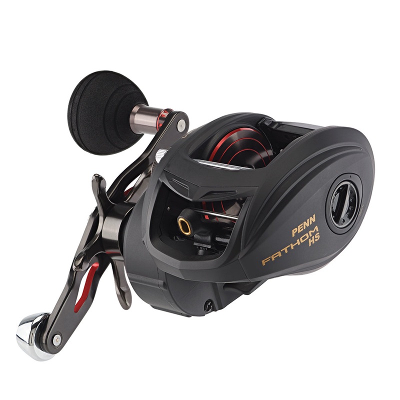 The PENN Fathom low profile baitcast reels offer all the features you need to tackle the toughest saltwater fish. The Full Metal Body and Right Side plate, matched with a brass main gear and bearing supported pinion offer a drivetrain with unparalleled power, while the TiN Coated Level Wind System and Synchronized Drag and Level Wind system (*400 size only) give extra durability under high drags. Available in 200, 300 and 400 sizes with both standard and high speed gear ratios. Left hand models available in standard gear ratio only.