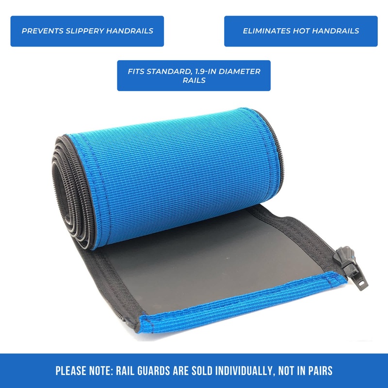 Install a rail cover for a safer, cooler grip on pool or spa handrails. Fabricated from soft neoprene, this rail cover provides a secure grip when entering and exiting the pool. Its also ideal for protecting hands from wet, oily, or hot stainless steel rails. Equipped with a durable, nylon zipper that makes it easy to install and keeps the cover in place. For use in residential or commercial pools. Fits standard, 1.9-in, in-ground pool rails. Sold individually, not in pairs.