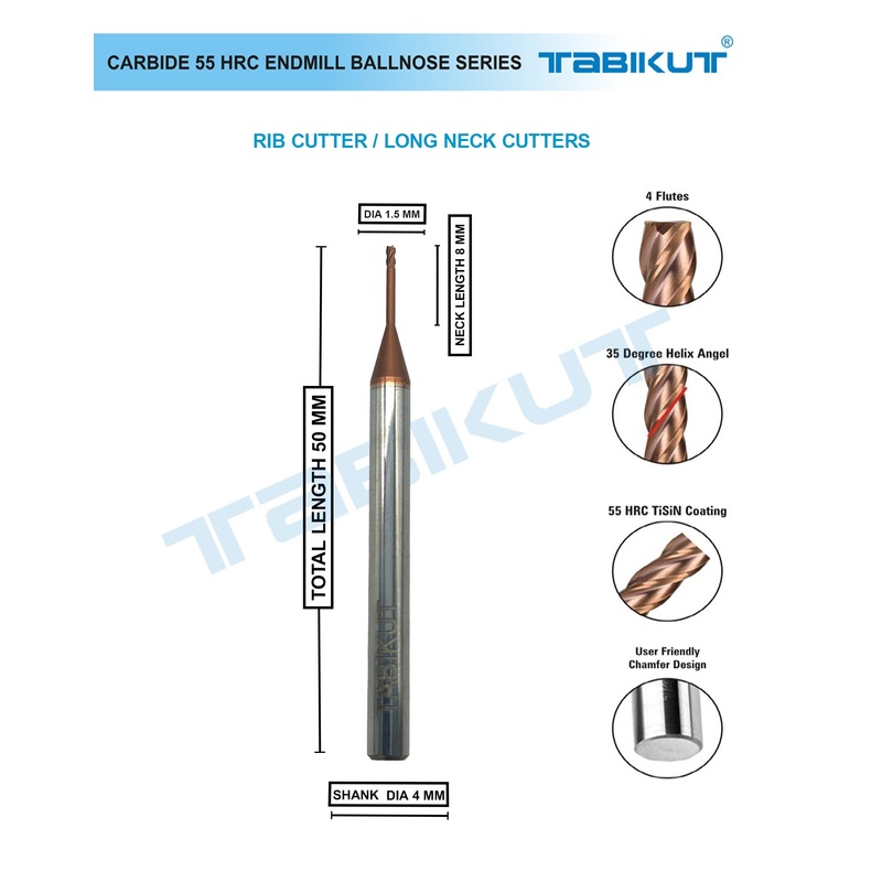 Rib cutter also called Long Neck Endmill Cutters are used for deep work of machining