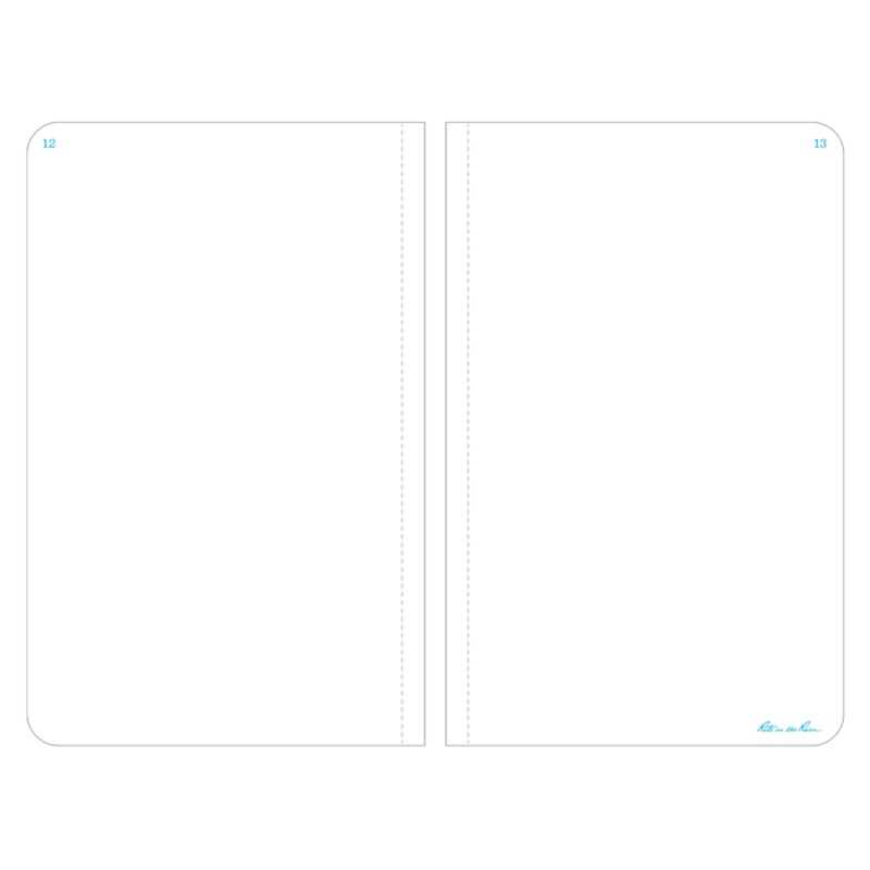 All-weather paper. Yellow farbrikoid cover. 80 sheets (160) pages, ruled with light blue lines, 4-5/8″ x 7-1/4″. Blank Pages.