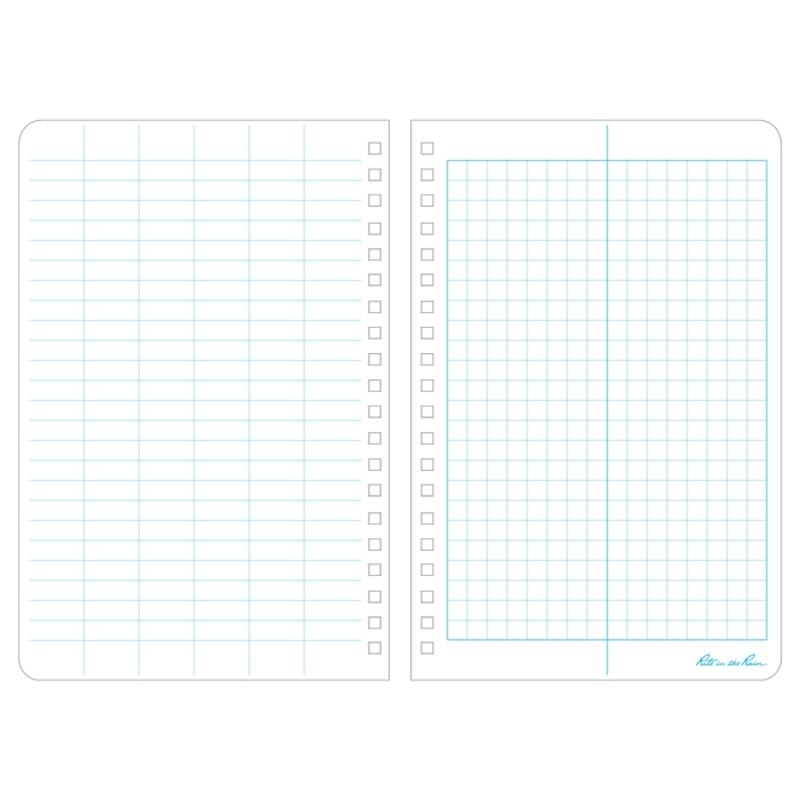 This book comes with 4 5/8″ x 7″ size pages and a Polydura cover and side spiral wire-o binding. 64 pages (32 sheets).