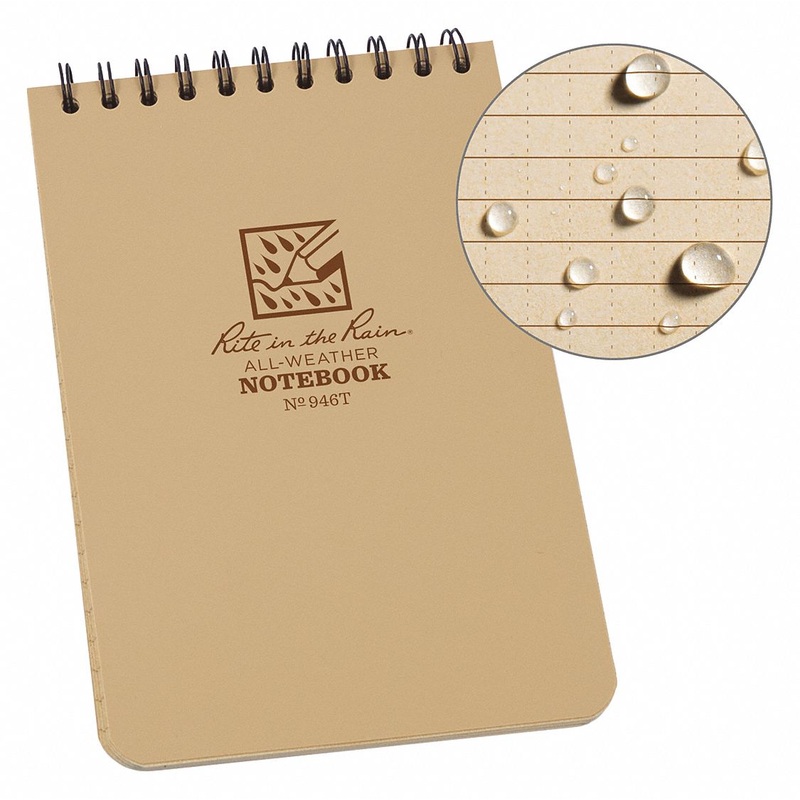 The 4″ x 6″ top-spiral notebook is small enough to fit comfortably in your pocket and tough enough to survive any of Mother nature’s onslaughts. This scrappy pocket notepad will survive rain, sweat, mud, snow, oil, and grease. The tan paper is legible in bright sunlight. Impact-resistant Wire-O binding won’t lose its shape when tossed around in packs or put in a back pocket. The polydura cover defends your field notes from scratches and stains. Each notepad is printed with a standard and metric ruler on the back cover.