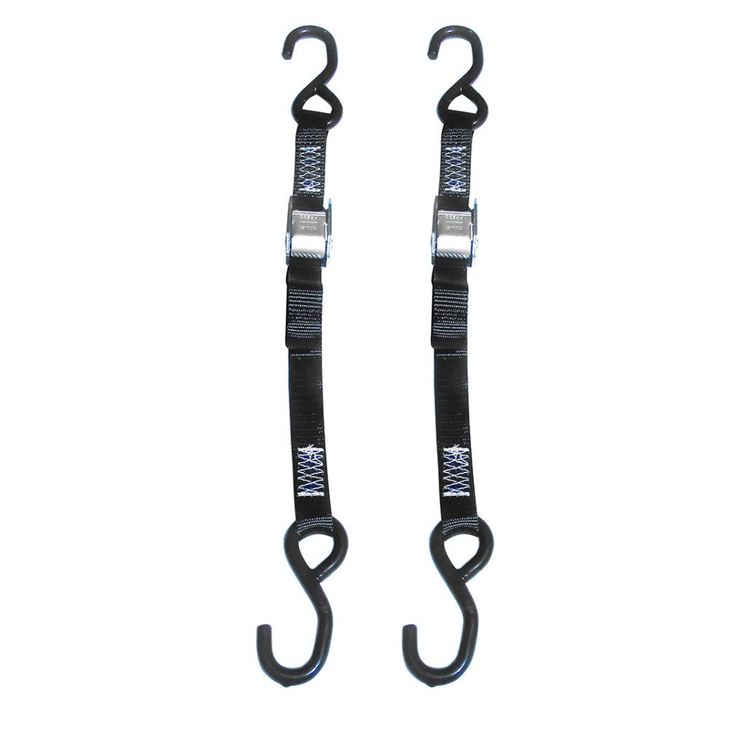 This is a pair of 1″ x 2′ Tie-Downs with vinyl coated top and bottom hooks. It has a smooth roller action cam buckle for quick and easy removal.
