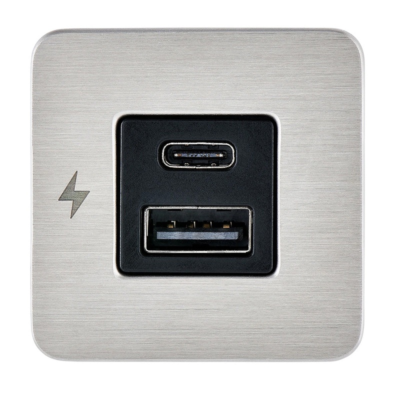 TILE USB-A/USB-C Interior Charging Socket – 12/24V – Stainless Steel Bezel