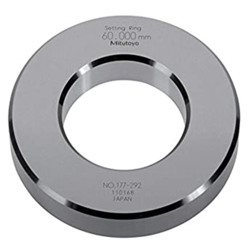 A Mitutoyo steel calibration artefact for quick and accurate setting of dial bore gauges, Holtest gauges, and inside micrometers. The actual calibration value for the diameter is marked on each ring.