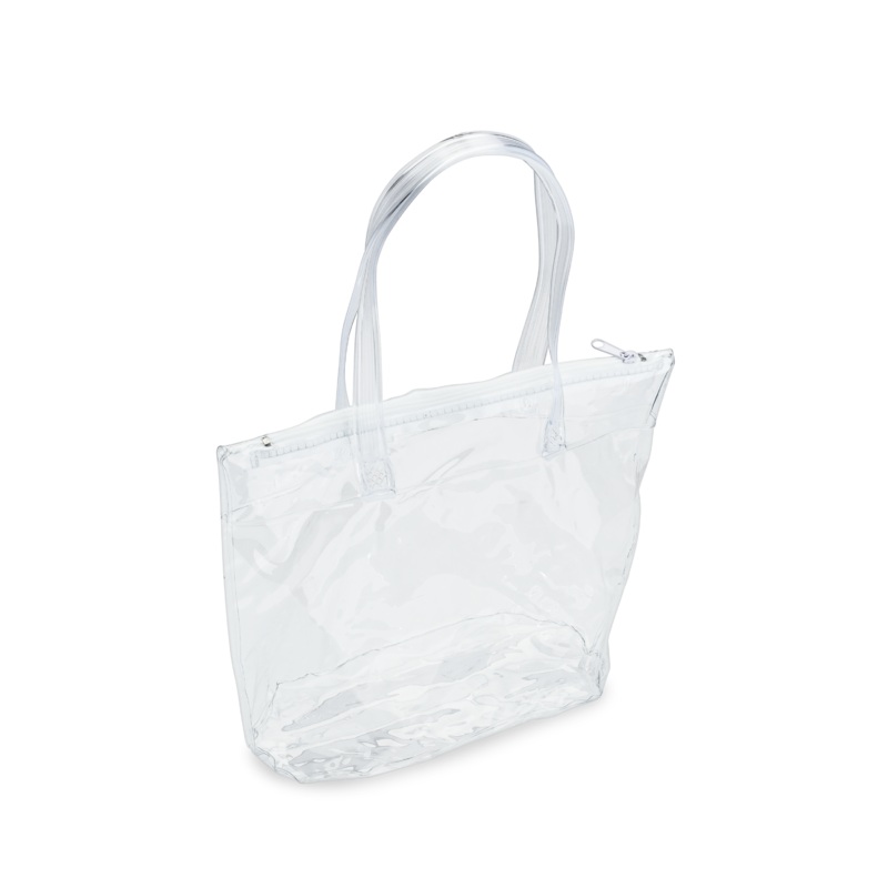 Crafted from durable and high-quality clear vinyl, this tote bag offers both visibility and durability. The transparent design allows for easy identification of your belongings, while the sturdy handles ensure comfortable carrying.10.5″ x 7.5″ x 4.5″