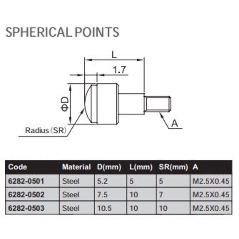 Spherical Contact Point – 6282 Series (INSIZE) 6282-0503 M2.5 x .45 D=10.5mm. L=10mm Radius 10mm