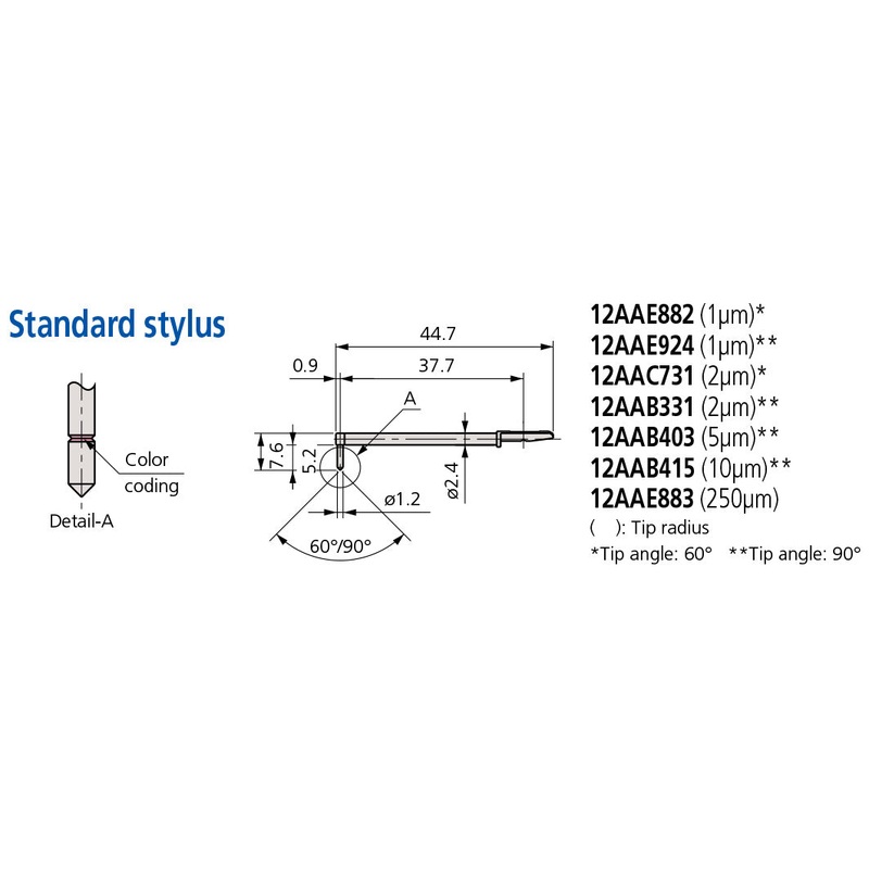 Mitutoyo Standard Stylus, Tip Angle 90, Tip Radius (2m) – 12AAB331