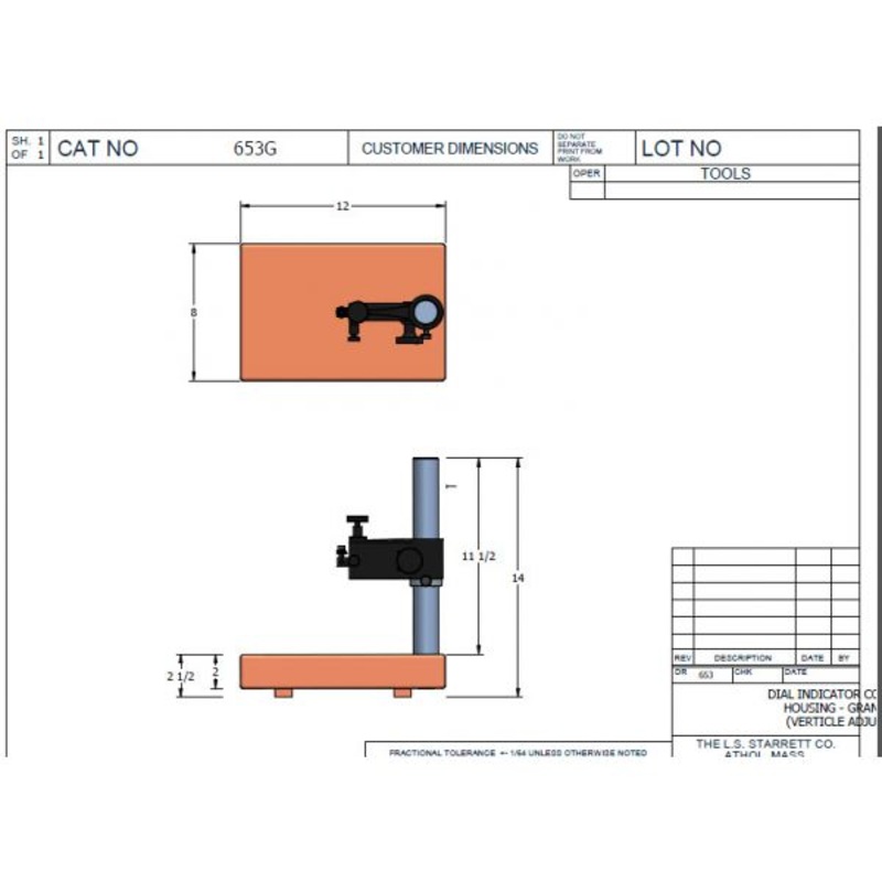 No. 653G Series have a Starrett Grade A Crystal Pink Granite base measuring 8″ x 12″ x 2″ (200 x 300 x 50 mm).
