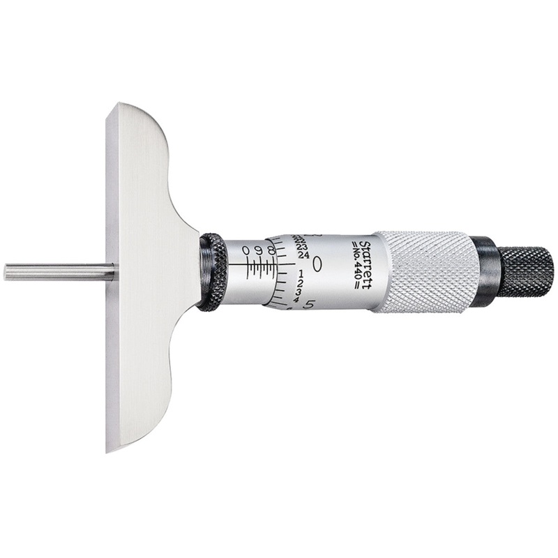 Starrett 440 Depth Micrometers have a 63.5mm (2.1/2″) base and 3.2mm (1/8″) diameter measuring rods.
