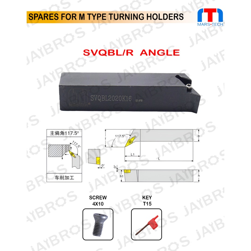 - Turning Holder SVQB/L 2525 M16 Suitable to VBMT1604 Insert.
