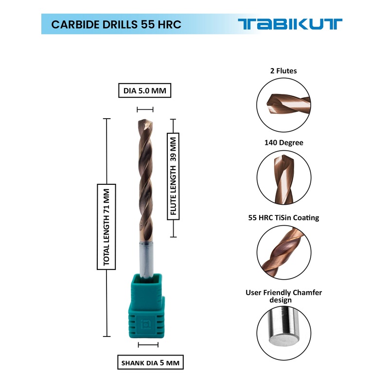 Carbide Drills hrc 55 with h7 of tolerance.