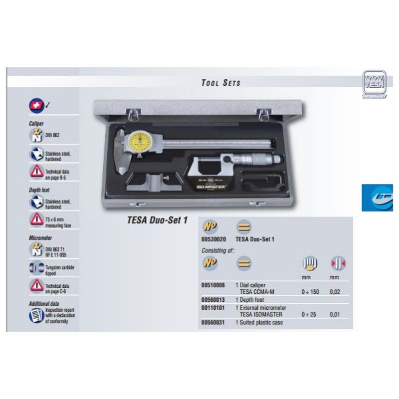 00530020 Consisting of: 1 Dial caliper 00510008 TESA CCMA-M 0-150mm x .02mm