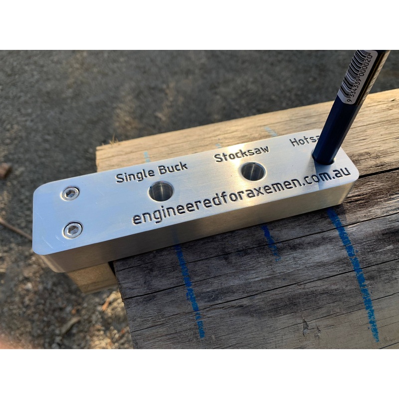 Simply insert the crayon into the hole at the required distance and roll the gauge around the log for a perfectly straight line that is consistent and easy to see.