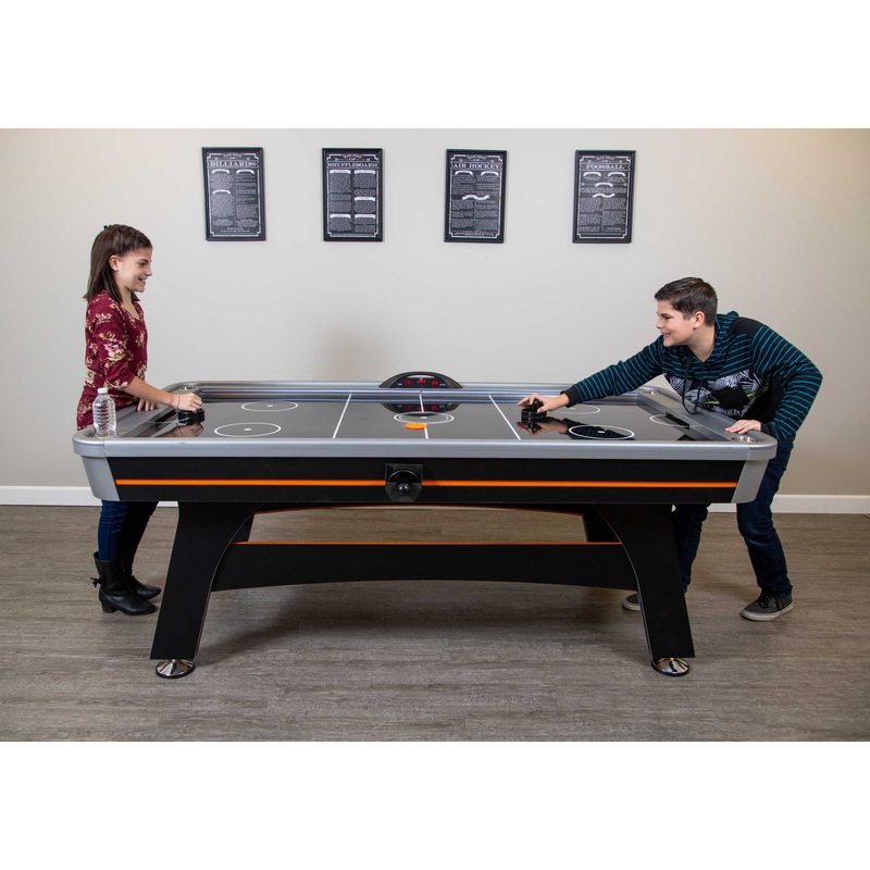 Bring the Trailblazer 84-in Air Hockey Table into your home for the ultimate experience in gaming. Its accurate, electronic scoring unit includes exciting sound effects. Side rail LED trace lights brighten up the playing field. Built-in drink holders keep refreshments conveniently on-hand and secure.