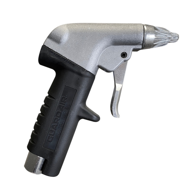 Best in class bench-top gun, the Ultra WhisperJet incorporates exclusive WhisperJet nozzle technology to provide superior thrust at reduced noise levels. Solid conical tip prevents nozzle blockage, thereby meeting OSHA requirements. Ergonomic, cushioned pistol-grip style handle provides unparalleled comfort.