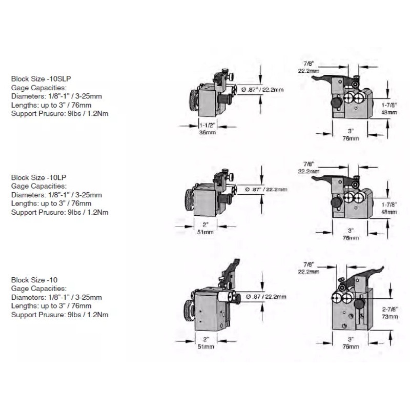 SpecificationsPart Diameter Capacity: 3/8″ to 2″ (10mm to 50mm)Part Length Capacity: Up to 6″ (152mm)Gage Length: 12.5″ (318mm)Gage Width: 4.5″ (114mm)Gage Height: 6″ appx. (152 mm)